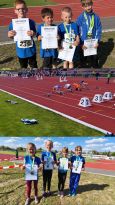 Auch nach den Sommerferien ging es wieder heiß her für unsere Leichtathleten, zahlreiche Wettkämpfe standen auf dem Plan. Erster Wettkampf war anlässlich von 70 Jahren SV Lampertswalde, der Jedermann Dreikampf für alle Altersklassen am 17.08.. Hier konnten Tim Riechert und Jonas Mönner die Pokalwertung direkt für sich entscheiden. Die Jungs in der AK 9 (Niklas Gröger, Luca Sander, Leonard Weise und Moritz Altmann) sicherten sich gleich den Vierfacherfolg. In der W9 siegte Emma Frank, vor Leni Espig und Mira Schubert. Von den Dreien werdet ihr noch einiges lesen, denn sie duellieren sich bei jedem Wettkampf. In der AK W10 gewann gleich Lilly Müller ihren ersten Wettkampf, hier belegten Julia Mönner und Anna Lena Gang Platz 3 und 4. In der W8 gewann Inka Nagel vor Emilia Gang. Nächster Wettkampf war der 24.08. in Cossebaude, ein Dreikampf, an dem 5 Sportler teilgenommen haben. Die Konkurrenz war diesmal schon wesentlich höher einzuschätzen. Niklas Gröger, Leonard Weise und Luca Sander erreichten die Plätze 4, 6 und 7 in der M9. In der W9 schaffte es Emma Frank auf den 3. Platz. Besonders im Ballwerfen geht es aufwärts, aber dazu später mehr… In der W10 startete Julia Mönner, ganz stark war der 3. Platz im 60m Hürdenlauf. Liebe Julia bitte immer weiter fighten auch wenn es mal nicht so gut läuft. Und weiter ging es mit dem Eberhard Arnhold Sportfest in Radebeul am 01.09., gleichzeitig die Kreismeisterschaften im Mehrkampf. Der Fokus lag dort natürlich auf dem Mehrkampf und der Titelvergabe. 13 unserer jungen Sportler hatten hier die Chance erfolgreich zu sein und das klappte ziemlich eindrucksvoll. In der W8 wurde Inka Nagel gute Sechste und Leni Weise Zwölfte. Den Kreismeistertitel in der W9 sicherte sich Emma Frank, hier gab es schon eine Steigerung im Ballwerfen auf 24,00m...und sehr gute Dritte wurde Mira Schubert. Bei beiden Mädels wechselt es immer hin und her, das ist sehr schön für die Leistungen. Die W10 hatte diesmal in unserer Lilly Charlotte Müller ihren Meister gefunden. Lilly trainiert zwar erst seit August bei uns, zeigt aber schon richtig gute Leistungen, die 7,95s im 50m Lauf sind schon stark und Goldmedaille war der Lohn. Julia Mönner landete ebenfalls in den Top 10, ihr bestes Einzelergebnis war der 5. Platz im Hürdensprint. Niklas Gröger wurde bei den Jungs der M9 verdient Kreismeister im Mehrkampf, in welchem Leo Weise(Platz 3.) und Matteo Weiss (Platz 5.) ebenfalls stark waren. Rudi Wolff und Felix Riechert starteten in der M10 bzw. M12, wo Rudi den 12. und Felix den guten 8. Platz belegen konnten. Ältester Starter war Jonas Mönner in der U16, wo es keine Mehrkampfwertung gab. Jonas war sehr erfolgreich, Platz 3 im Hochsprung und Platz 2 im Kugelstoßen sind super Ergebnisse. |