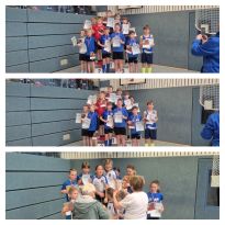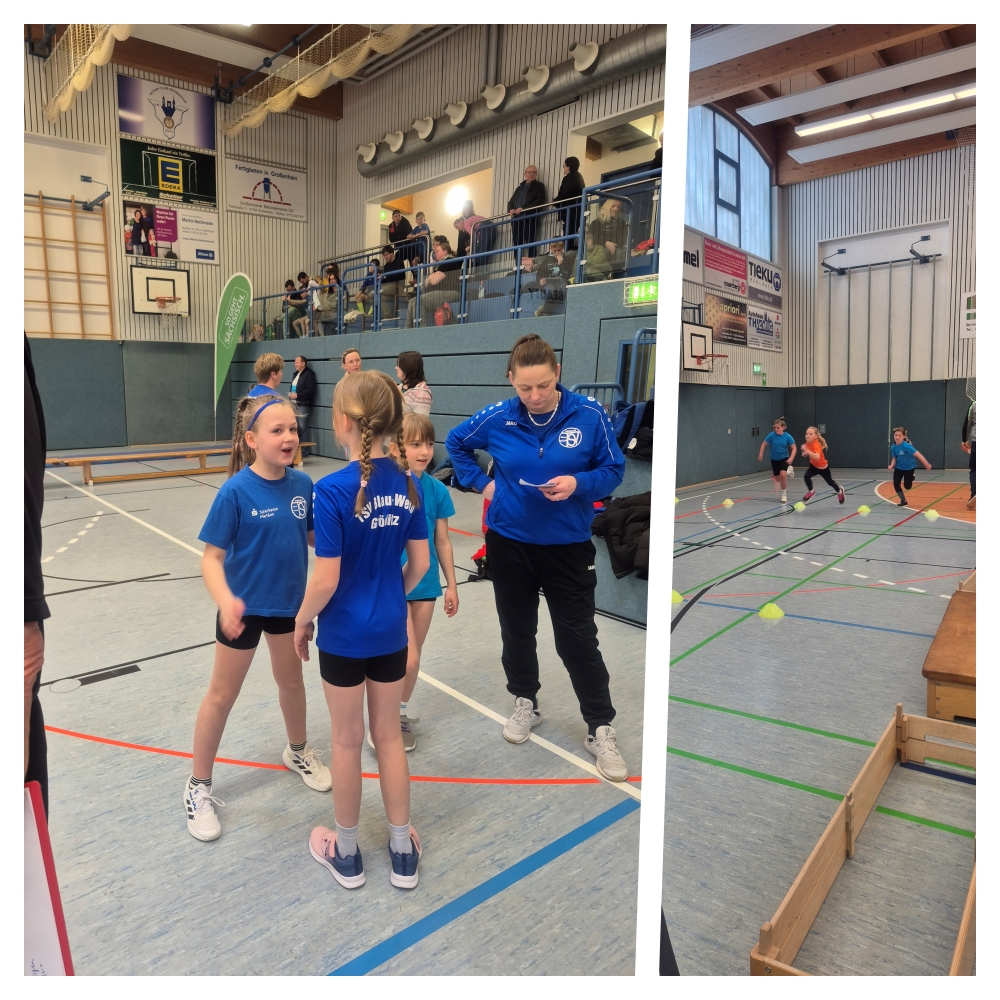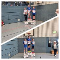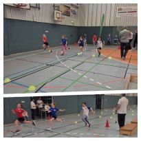 Als die Mädchen und Jungen der U 10 zur 4-mal-1-Runde-Staffel antraten, wurde es richtig laut in der Halle. Die Zuschauer feuerten die Sportlerinnen und Sportler hörbar an. Unter diesem Ansporn erkämpften sich Juliane, Ella, Emma und Sophia mit fehlerfreien Übergaben des Staffelstabes und tollen Rundensprints jeder Einzelnen mit einer Zeit von 1:07 min die Silbermedaille. Tim und Konrad traten mit dem TSV Blau-Weiß Gröditz in einer Startgemeinschaft mit dem SV Lampertswalde an. In dieser Mischung konnten sie sich mit einer Zeit von ebenfalls 1:07 min den ersten Platz sichern und sich über den Kreismeistertitel in der Staffel MU10 freuen.