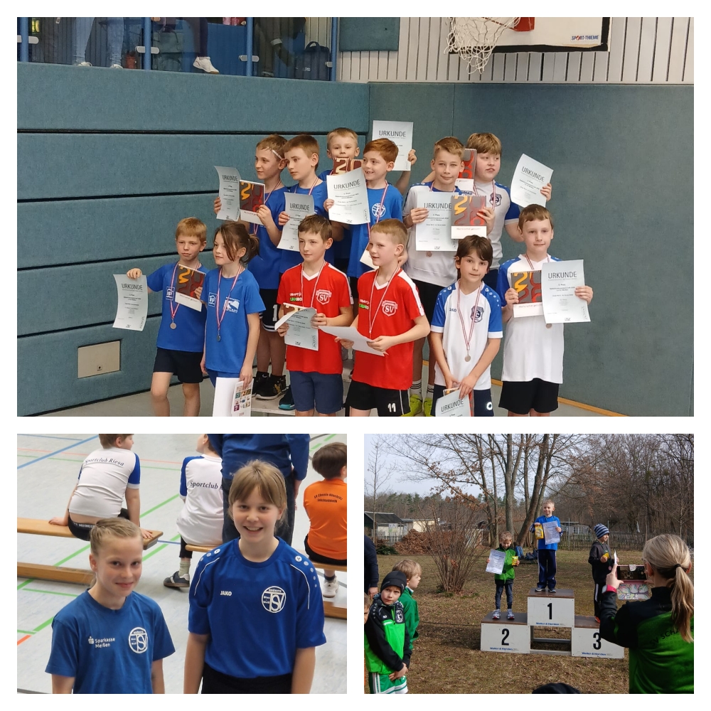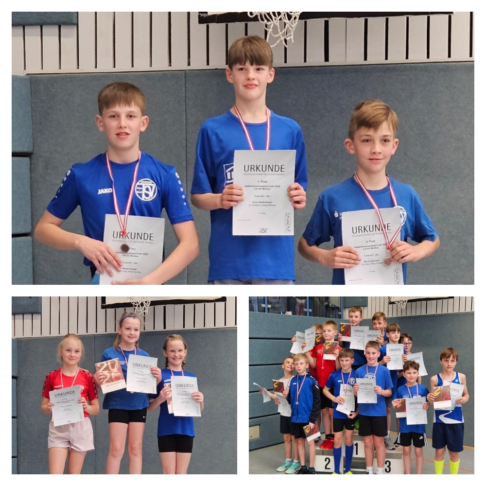 24 junge Leichtathleten waren sehr erfolgreich bei den Hallenkreismeisterschaften am 09.03. 2025 in Großenhain am Start. Medaillen gab es im Medizinball Stoßen, 30m Sprint, 3er Hopp bzw. Schlusssprung, Rundenlauf und dem Staffellauf zu gewinnen. Unsere Athleten holten dabei 8x den Titel, 9x Silber und 4x Bronze. Jüngster und erfolgreichster Teilnehmer war Tim Riechert in der Altersklasse M6. 3x Gold und 1x Silber gingen allein auf sein Konto. Jüngste Teilnehmerin war Martha Bastian in der W7. Für Martha war es der 1. Wettkampf und sie machte mit guten 6. Plätzen auf sich aufmerksam. In der W9 konnte Inka Nagel das Medballstoßen für sich entscheiden. In der M10 konnten Leonard Weise, Luca Sander und Niklas Gröger Medaillenluft schnuppern und das Podest erfolgreich betreten. Leonard sammelte ebenso wie Niklas 3 Medaillen und Luca holte sich die Silbermedaille. Zwei Siege und 1x Bronze, das schaffte Emma Frank in der W10. Sie gewann im Dreierhopp und im Medballstoßen und holte Bronze im Sprint. Julia Mönner gewann im Rundenlauf der W11 die Silbermedaille. |