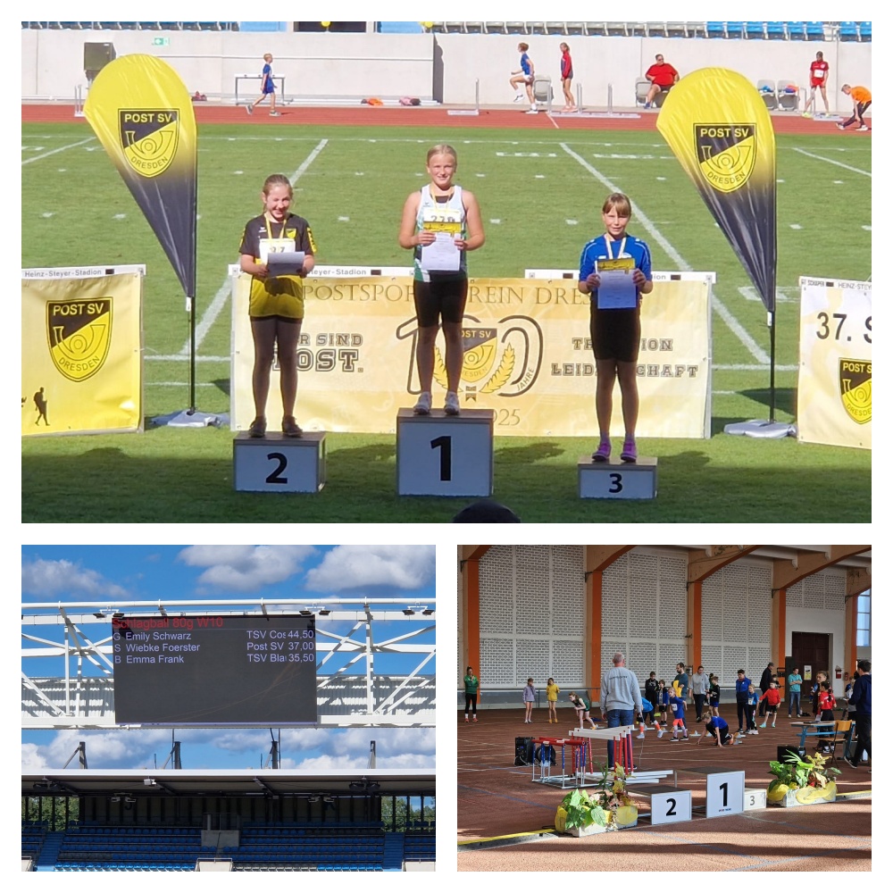 Auch nach den Sommerferien ging es wieder heiß her für unsere Leichtathleten, zahlreiche Wettkämpfe standen auf dem Plan. Erster Wettkampf war anlässlich von 70 Jahren SV Lampertswalde, der Jedermann Dreikampf für alle Altersklassen am 17.08.. Hier konnten Tim Riechert und Jonas Mönner die Pokalwertung direkt für sich entscheiden. Die Jungs in der AK 9 (Niklas Gröger, Luca Sander, Leonard Weise und Moritz Altmann) sicherten sich gleich den Vierfacherfolg. In der W9 siegte Emma Frank, vor Leni Espig und Mira Schubert. Von den Dreien werdet ihr noch einiges lesen, denn sie duellieren sich bei jedem Wettkampf. In der AK W10 gewann gleich Lilly Müller ihren ersten Wettkampf, hier belegten Julia Mönner und Anna Lena Gang Platz 3 und 4. In der W8 gewann Inka Nagel vor Emilia Gang. Nächster Wettkampf war der 24.08. in Cossebaude, ein Dreikampf, an dem 5 Sportler teilgenommen haben. Die Konkurrenz war diesmal schon wesentlich höher einzuschätzen. Niklas Gröger, Leonard Weise und Luca Sander erreichten die Plätze 4, 6 und 7 in der M9. In der W9 schaffte es Emma Frank auf den 3. Platz. Besonders im Ballwerfen geht es aufwärts, aber dazu später mehr… In der W10 startete Julia Mönner, ganz stark war der 3. Platz im 60m Hürdenlauf. Liebe Julia bitte immer weiter fighten auch wenn es mal nicht so gut läuft. Und weiter ging es mit dem Eberhard Arnhold Sportfest in Radebeul am 01.09., gleichzeitig die Kreismeisterschaften im Mehrkampf. Der Fokus lag dort natürlich auf dem Mehrkampf und der Titelvergabe. 13 unserer jungen Sportler hatten hier die Chance erfolgreich zu sein und das klappte ziemlich eindrucksvoll. In der W8 wurde Inka Nagel gute Sechste und Leni Weise Zwölfte. Den Kreismeistertitel in der W9 sicherte sich Emma Frank, hier gab es schon eine Steigerung im Ballwerfen auf 24,00m...und sehr gute Dritte wurde Mira Schubert. Bei beiden Mädels wechselt es immer hin und her, das ist sehr schön für die Leistungen. Die W10 hatte diesmal in unserer Lilly Charlotte Müller ihren Meister gefunden. Lilly trainiert zwar erst seit August bei uns, zeigt aber schon richtig gute Leistungen, die 7,95s im 50m Lauf sind schon stark und Goldmedaille war der Lohn. Julia Mönner landete ebenfalls in den Top 10, ihr bestes Einzelergebnis war der 5. Platz im Hürdensprint. Niklas Gröger wurde bei den Jungs der M9 verdient Kreismeister im Mehrkampf, in welchem Leo Weise(Platz 3.) und Matteo Weiss (Platz 5.) ebenfalls stark waren. Rudi Wolff und Felix Riechert starteten in der M10 bzw. M12, wo Rudi den 12. und Felix den guten 8. Platz belegen konnten. Ältester Starter war Jonas Mönner in der U16, wo es keine Mehrkampfwertung gab. Jonas war sehr erfolgreich, Platz 3 im Hochsprung und Platz 2 im Kugelstoßen sind super Ergebnisse. |
