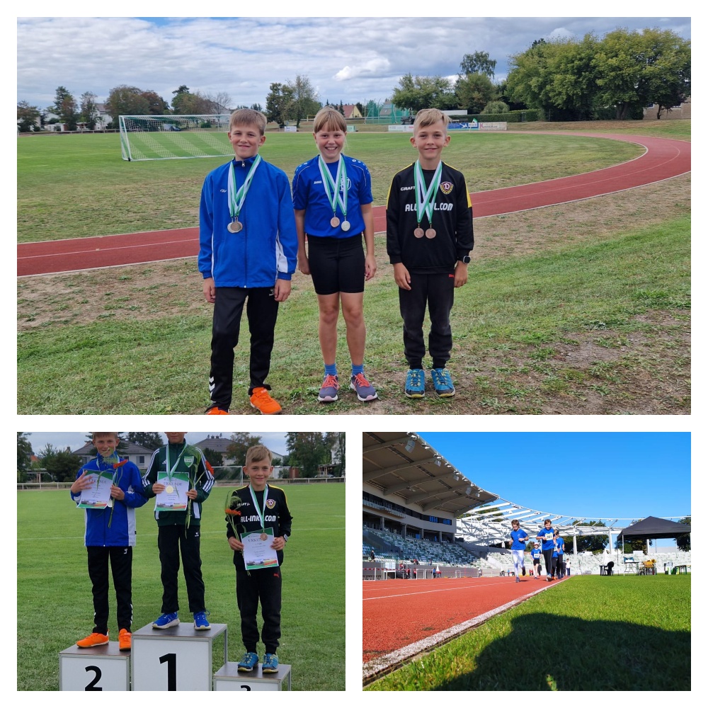 Jetzt, mit dem Beginn der Sommerferien in Sachsen, ist es an der Zeit mal eine Bilanz der ganzen Wettkämpfe zu ziehen, an denen wir seit Ostern teilgenommen haben. Los ging es mit dem Lößnitzsportfest am 13.04. in Radebeul, dort wollten wir testen, wie erfolgreich das Wintertraining gewesen ist. Dieser Test war vielversprechend und ein wichtiger Hinweis auf das weitere Training. Der erste Mehrkampf fand am 28.04. in Riesa statt. Hier gelang den vier Jungs in der M9 direkt der Sprung in die Top 5 mit einem Doppelsieg von Niklas Gröger und Leonard Weise. Auch die Mädchen der AK 8/9 und 10 zeigten gute Leistungen. Beim nächsten Wettkampf am 12.05. wurde unsere Leichtathletikmannschaft geteilt, die Großen waren in Dresden und die Jüngeren in Großenhain am Start. Auch hier konnten sehr gute Leistungen erzielt werden. Erstmalig waren wir dann am 25.05. in Freital/Weißig, bei einem kleinen aber feinem Sportfest zu Gast. Emma Frank, Mira Schubert, Niklas, Leonard, Julia und Jonas Mönner und Zoe Zörner zeigten hier schöne Leistungen. Die ostsächsischen Meisterschaften am 01.06. in Bautzen standen unter keinem guten Stern. Unwetter waren angesagt und so kam es dann auch. Zoe konnte den Wettkampftag nicht erfolgreich beenden. Höhepunkt sollten für alle die Kreis,- Kinder,- und Jugendspiele am 08./09. Juni in Riesa und die Landesmeisterschaften vom 14. bis 16. Juni in Dresden werden. Die Jüngeren durften in Riesa am Samstag ihre Meisterschaft ausrichten. Und die Älteren der AK 12/13 mussten sogar an beiden Tagen starten. Die gezeigten Leistungen aller Athleten waren ganz stark. Als Beispiel möchte ich hier die beiden Staffeln in der W 8/9 und der M 8/9 anführen. Mit anderthalb Sekunden Vorsprung kamen beide als Sieger ins Ziel, das ist richtig stark. Bei den Jungs liefen Niklas Gröger, Luca Sander, Mattheo Weiss und Leonard Weise. Die Mädchen starteten in der Besetzung Mira Schubert, Elsa Dietrich, Leni Weise und Emma Frank. Insgesamt konnten wir 45 Medaillen gewinnen, 8x Gold, 20xSilber und 17x Bronze, das ist super. Für die Landesmeisterschaften hatten sich Zoe Zörner und Jonas Mönner mit ihren guten Leistungen qualifiziert. Am Samstag war Zoe über die 3000m, dem 100m Sprint und im Dreisprung am Start. Silber wurde es im 3000m Lauf! und das bei strömenden Regen. Sprint und Dreisprung liefen dagegen nicht so gut aus Zoe’s Sicht:) Sonntag durfte Jonas die 80m Hürden laufen und das machte er richtig super. Er verbesserte seine persönliche Bestzeit um eine halbe Sekunde und verpasste den Endlauf nur denkbar knapp. Ein großes Dankeschön gilt allen Trainern die groß oder klein trainieren. Ines Passin, Anke Naumann (Mokis), Ulrike Zörner, Heike Liebermann und Heiko Wolff (kleine Gruppe und Kiga Nauwalde) und neu dabei ist Tino Mönner in der großen Gruppe, Super! Wir suchen natürlich weiterhin Verstärkung für unser Trainerteam…